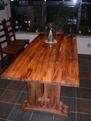 On December 24th at 7:30 pm, I completed the dogwood table.  It took 130 hours to complete and was finished with two coats of Deft Exterior Oil.  It included two drop-in leaves supported by telescoping arms.  I am very pleased with how it turned out (and also that I got it done for Christmas) as are the Kilpatricks.