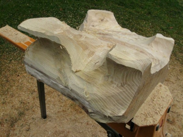Working on the upper half of the carving, I once again started by carving away cracks and bark.