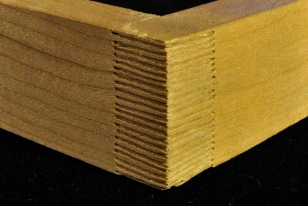For some reason, I have never experimented with finger joints. But recently, while playing with the dovetail saws at one of the woodworking shows, I found myself addicted to cutting them. Here’s one of the better joints I cut: