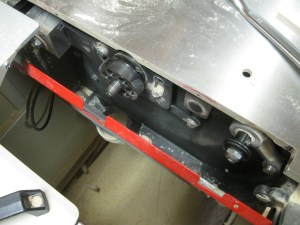 So I removed the dado stack and took out the table insert – it’s attached to the side of the table casting with four machine screws and lock washers. I also had to remove the riving knife which only works for 10″ blades. I also removed the spacer on the arbor to allow the dado stack to sit further onto the arbor.