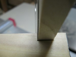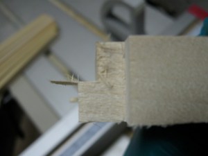 I removed the necessary shims and then worked on adjusting the depth of cut. For the half laps, I needed the blade set at exactly half of the stock thickness. Since the core’s grid is formed with strips on edge, I actually needed to set the blade to half the width of the strips. I set the blade a little low and made one rabbet cut, then flipped it over and moved it over slightly to make the second rabbet cut. Since the blade was too low, the two rabbets left some material in the middle. I raised the blade a little and tried again until it was removed. Once I had the blade height set, I did a final test fit.