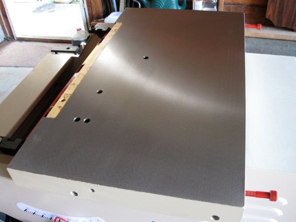 I also spent a good bit of time cleaning up my shop to make room for the new saw. I think that I will try to keep both table saws operational and in the shop for the time being just to see what it’s like working with two saws. I once had the idea of putting two saws side by side – one in place of the other saw’s extension wing. That way I would have two saws using the same fence rail. I could have one set up for ripping and one for crosscutting. Or with a dado stack.