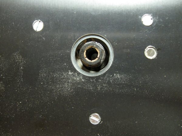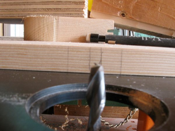 The first thing I did was remove the three machine screws holding the router’s baseplate to the router and use double-stick tape to secure the baseplate to the phenolic router table. I drilled clearance holes for the three machine screws and countersunk them because the supplied screws were flat-headed. Some models of routers use pan-head screws and in that case, I would have counterbored the holes with a forstner bit. I drilled a fourth hole in case I wanted to use the above-the-table-adjustment feature that this router offers. Then I removed the baseplate from the phenolic and bolted the router to the underside of the phenolic.