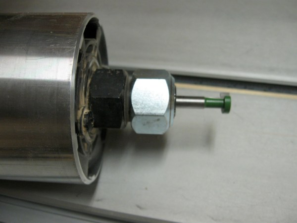 The collet nut has threads on the inside that match the threads on the outside of the router’s spindle. As the collet nut is tightened on the spindle, it forces the collet down with it. Most router collets have six flats on the outside for convenient use with the wrench(es) provided with the router.