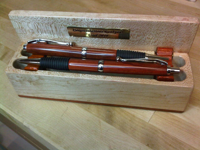 Turned items can be quick and are also often practical.  Pens and pencils are always popular.  For that extra-special someone, consider making a box for a pen-and-pencil set.