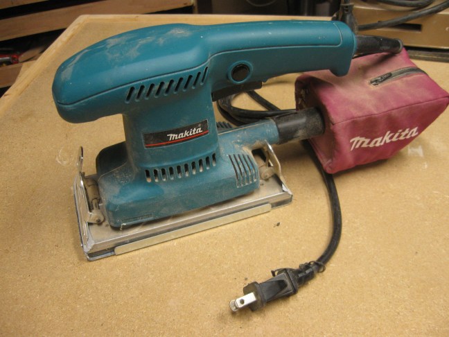 This time, I am giving away one Makita BO3700 Finishing Sander which has seen a minimal amount of use. It uses 1/3 of a standard 9×11″ sandpaper sheet which is held in place by a spring-loaded clamp at each end of the pad.