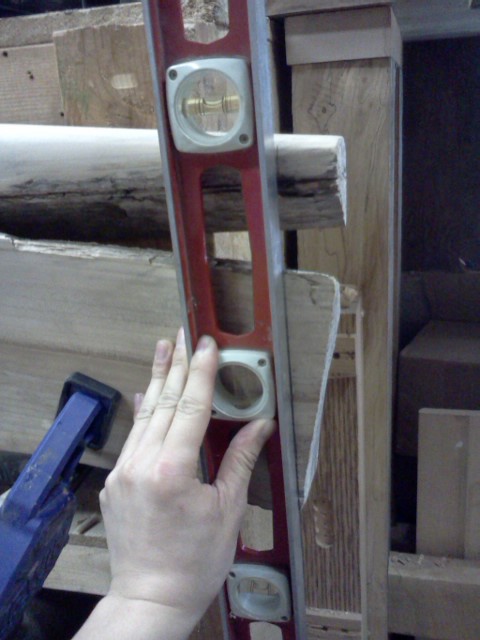 FlairWoodworks I’m standing back and having a drink of water while I analyze the stretcher’s positioning. Should I make one end higher? #flairww -2:00 PM May 2nd, 2012