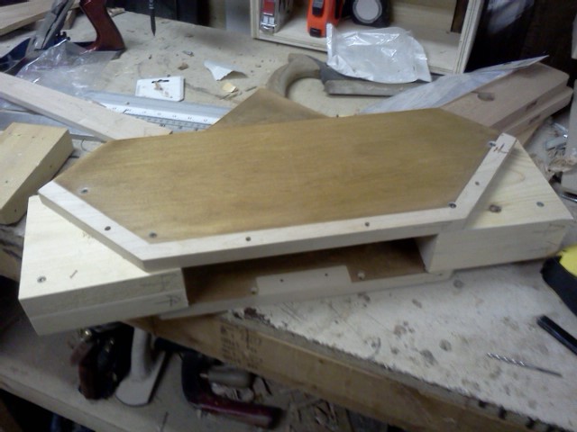 FlairWoodworks I’m opting to use the jigsaw. I clamped a piece of plywood to the top of the stretcher. #flairww -2:21 PM May 2nd, 2012
