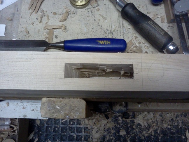 FlairWoodworks Cutting an angled, 7/8″ x 4″ mortise is slow but I’m getting there. #flairww -5:59 PM May 15th, 2012