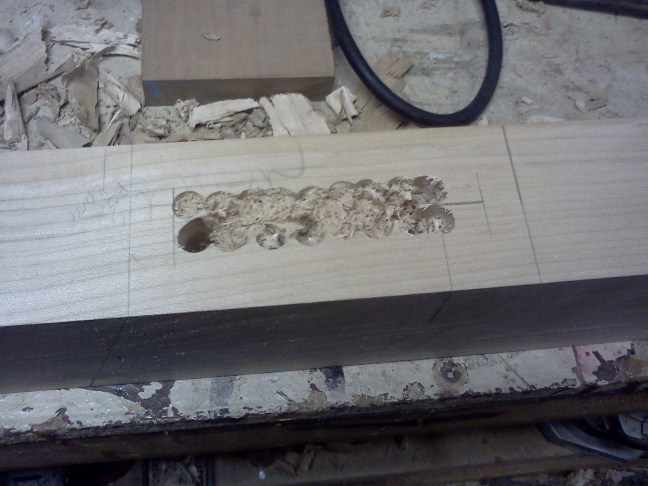 FlairWoodworks I drilled out the centre. I’ll chisel the rest. #flairww -5:29 PM May 15th, 2012
