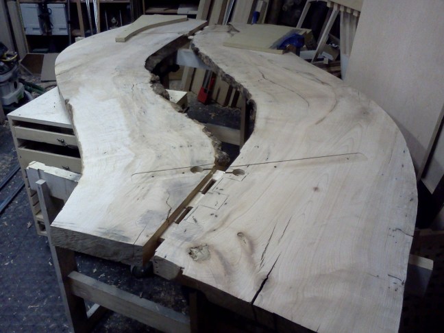 FlairWoodworks Back after lunch, I’ll work to take the two slabs apart so I can work on the fit. #flairww -3:56 PM May 22nd, 2012