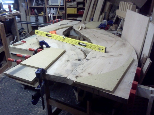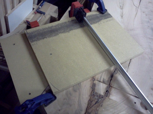 FlairWoodworks My longest clamp is just long enough to pull the two slabs into alignment. #flairww -1:48 PM May 22nd, 2012