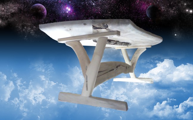 FlairWoodworks I know you’re as anxious as I to see the table on its feet. With a little Photoshopping, I got this. (Thanks to my friend Mike for lending me his sky hook!) #flairww -4:11 PM Jun 7th, 2012