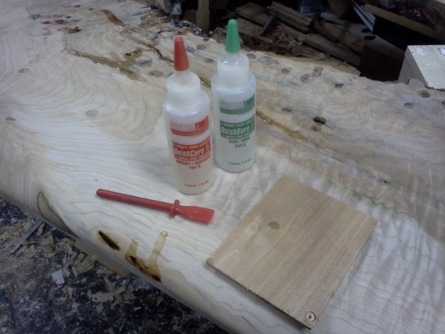 FlairWoodworks I’m going to use 5-minute epoxy for the smaller voids and voids along the edges. #flairww -8:07 PM Jun 26th, 2012