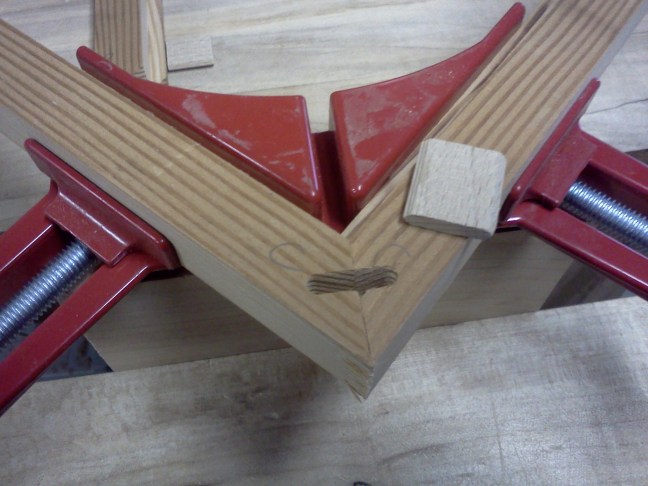 FlairWoodworks I’m using a corner clamp to hold the pieces together while I make the cut for the Domino spline. #flairww -4:08 PM Jul 3rd, 2012