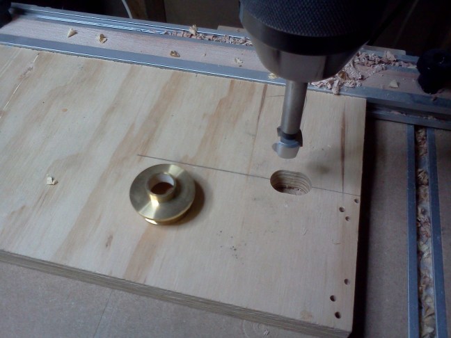 FlairWoodworks With a 5/8″ Forstner bit, I drilled overlapping holes to make an oval hole for the guide bushing. #flairww -2:02 PM Jul 4th, 2012