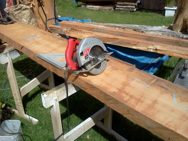 FlairWoodworks Once again, I’ve hauled out a beam and will start by crosscutting it in half. #flairww -3:19 PM Jul 24th, 2012
