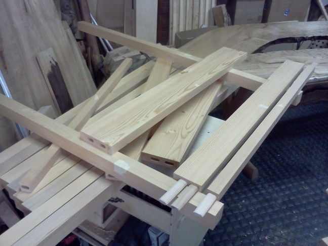 Yes, I am enjoying working with the Douglas fir. It’s beautiful and works easily. It’s heavy but still dents when you sneeze on it at close range. I think it’s often overlooked for furniture, although vertical grain (quartersawn or riftsawn) fir is often used for trim and millwork.