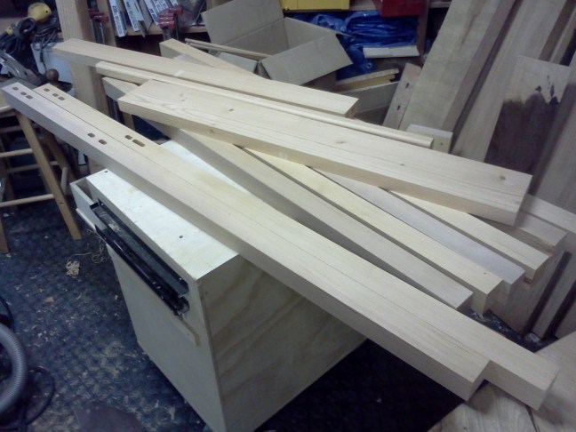 FlairWoodworks This awkward-looking stack contains enough jointed material for the remaining bed frame parts. -7:14 PM Jul 26th, 2012