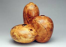 When I first saw this photo, I thought, “Those are three nicely-proportioned vessels made of nicely-figured wood.” And then I looked again. What I failed to realize at first was that the three hollow vessels were actually made from a single piece of burl, and still connected!
