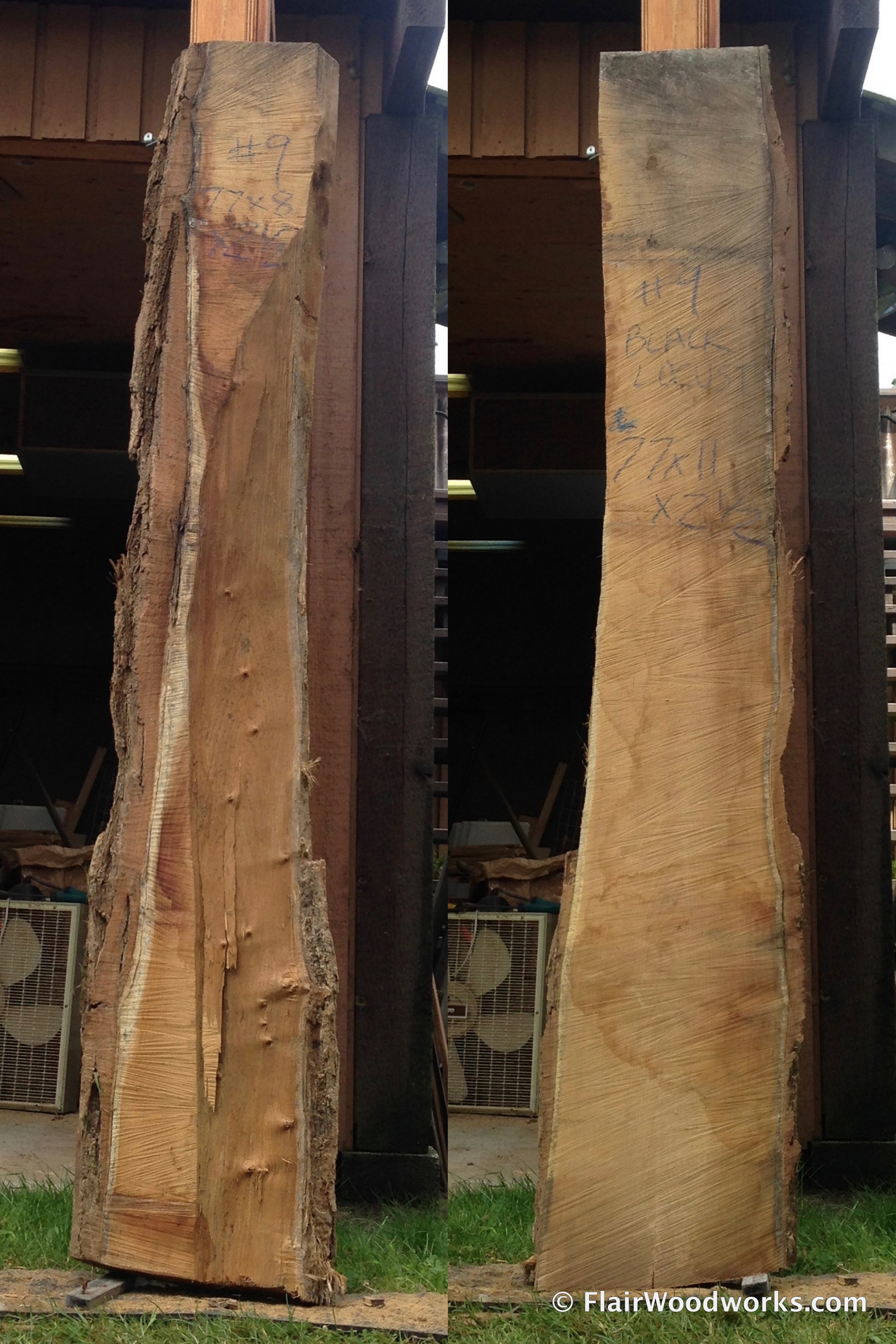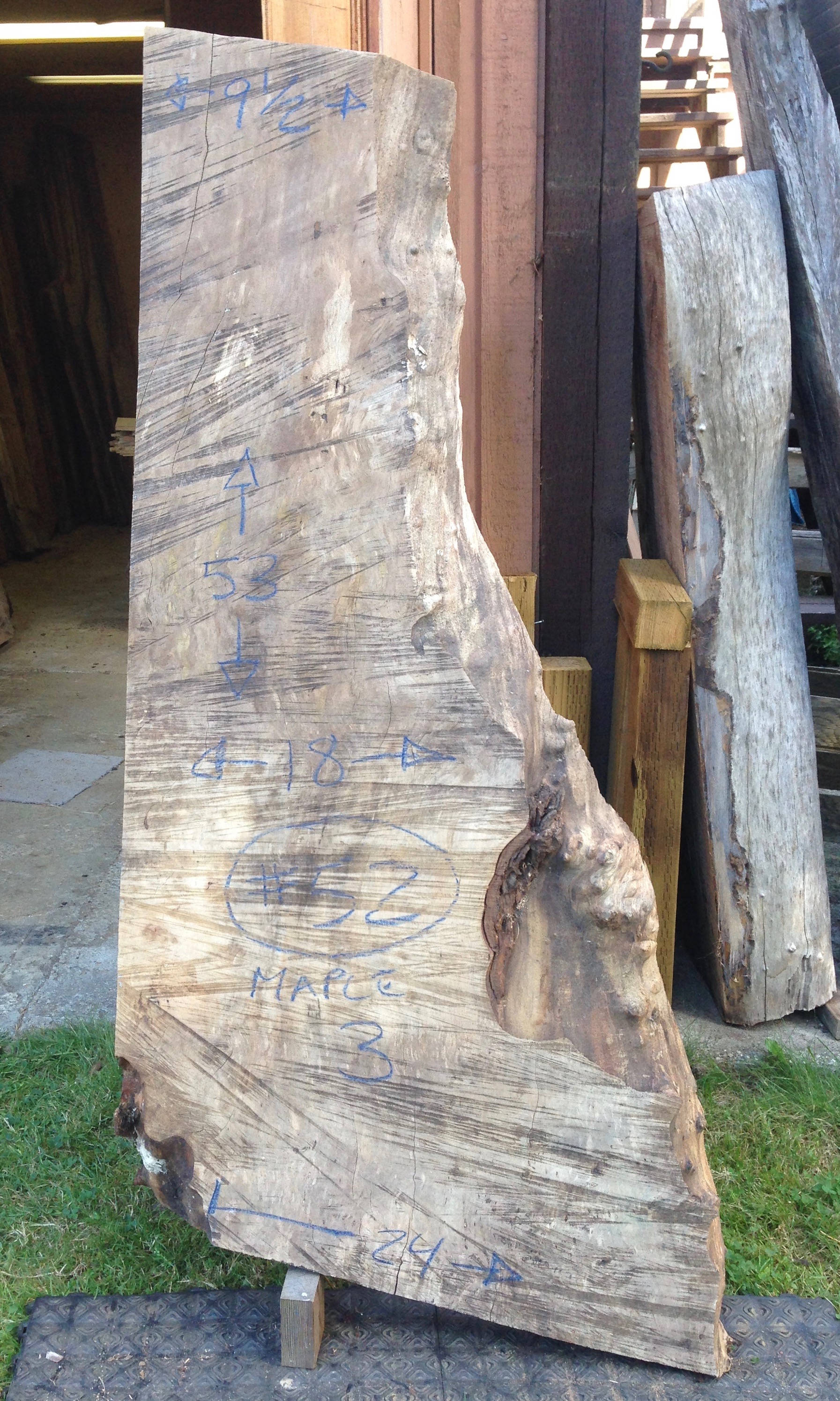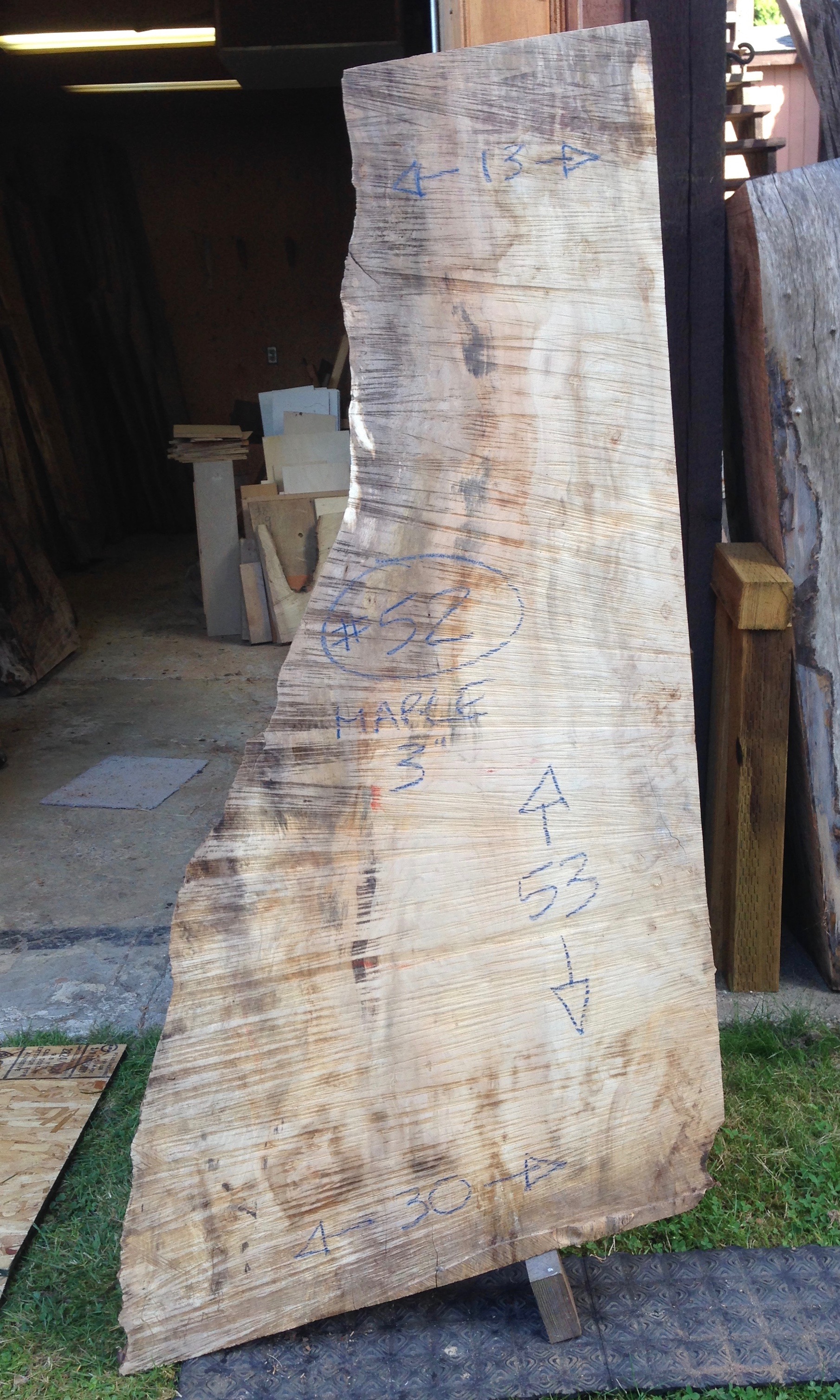 Since 2005, I have been stockpiling local hardwoods. These are full flitches (entire logs) milled to my specifications for furniture making and stacked on pallets. Most slabs have two live edges.