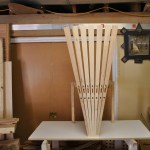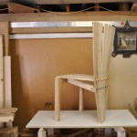 From Prototype #1 I learned that the 3/8″ thick slats were too springy so I increased the back and seat slats up to 7/16″ and 1/2″ thick, respectively.  The seat slats in Prototype #1  extended through slots in the back to prevent them from rotating.  For Prototype #2, I reduced their length and took off the point on the end.