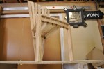 I built a nicer-looking frame out of ash.  I had originally used floating tenons (Dominoes) to join the rails and stretchers but they failed.  For additional strength, I added two pocket screws and a metal angle bracket to each corner and epoxied the frame back together, but the stresses still won. I learned that I needed to get serious with the joinery.