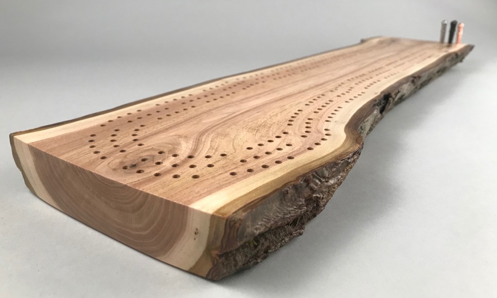A live-edge cribbage board makes a great gift for that hard-to-buy-for person, anyone who likes playing cards or somebody looking for a unique centrepiece for a coffee table. Personalize or dedicate it with custom engraving (see below).