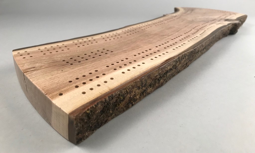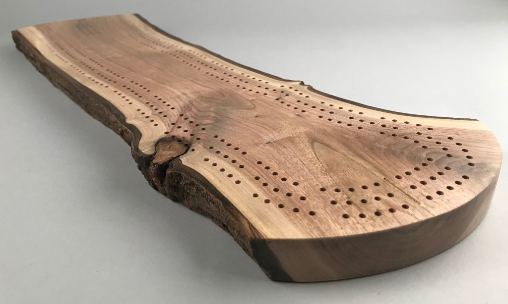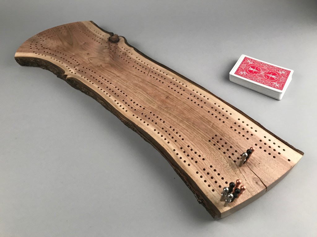Grab a deck of cards and challenge your friends to a game of crib on this completely unique and one-of-a-kind cribbage board. This beautiful crib board features three meandering paths following the grain of the wood and a scoring field to keep track of wins.