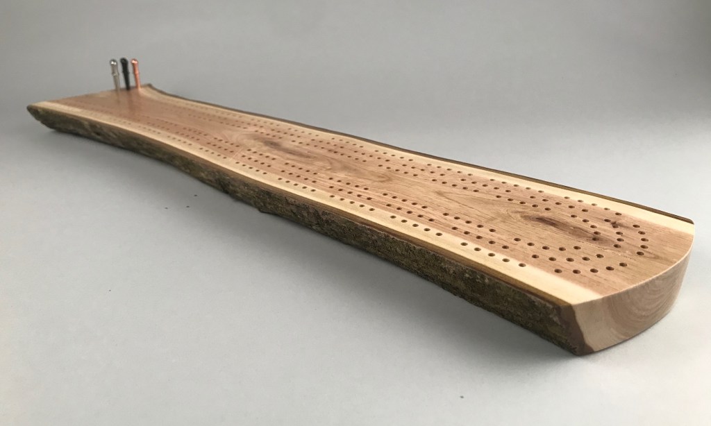 A live-edge cribbage board makes a great gift for that hard-to-buy-for person, anyone who likes playing cards or somebody looking for a unique centrepiece for a coffee table. Personalize or dedicate it with custom engraving (see below).