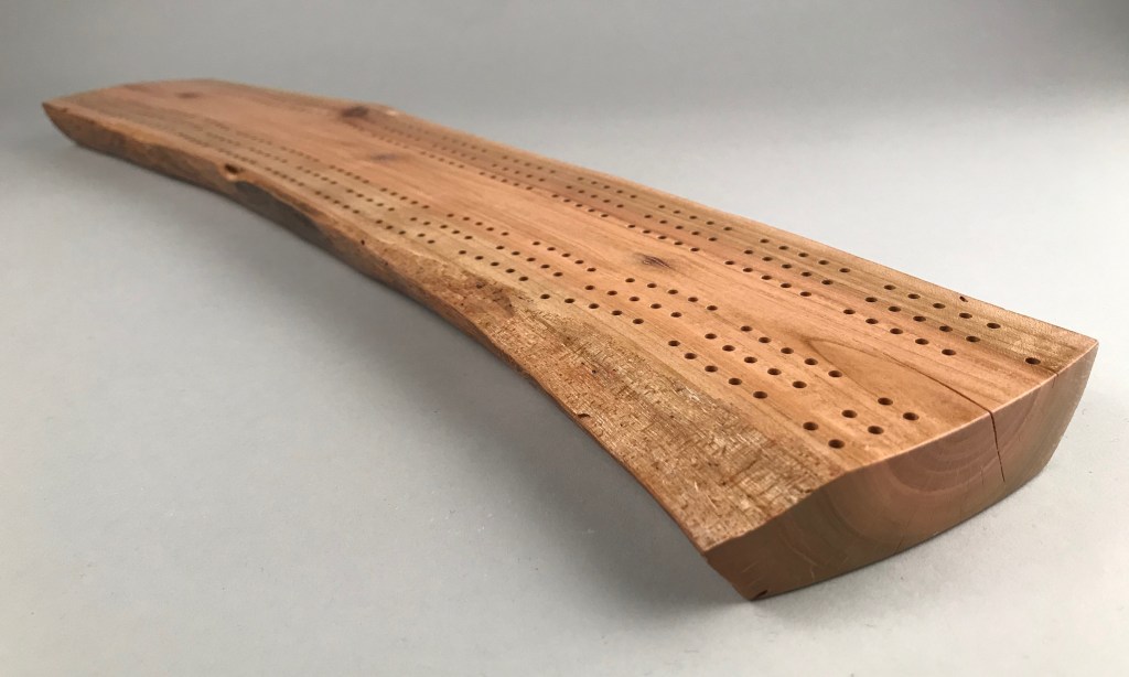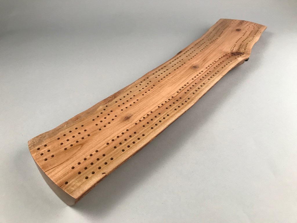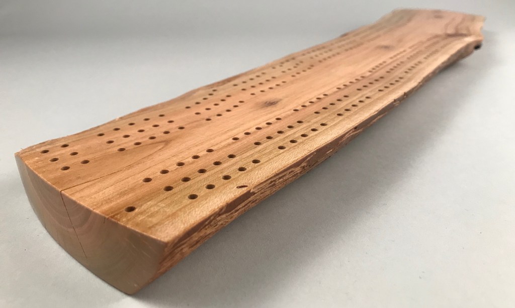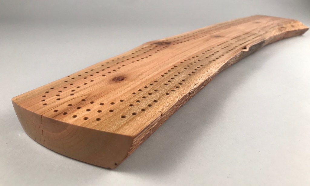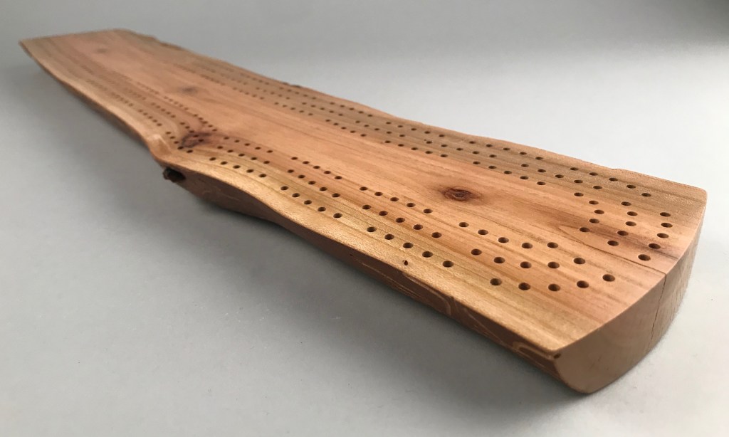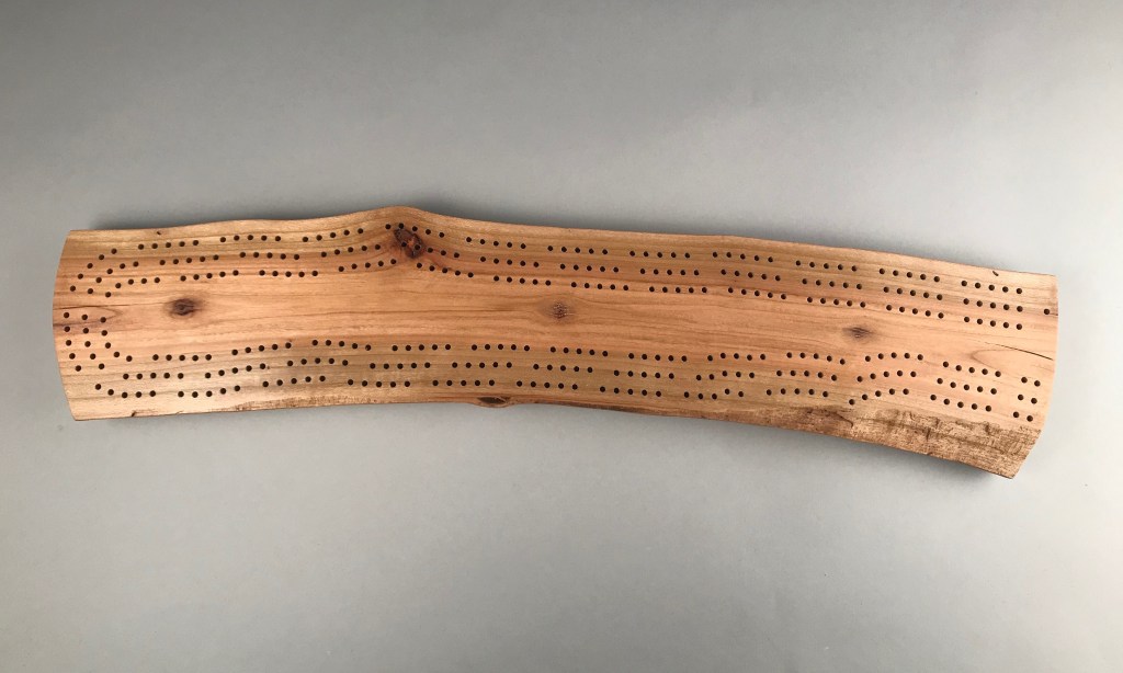 A live-edge cribbage board makes a great gift for that hard-to-buy-for person, anyone who likes playing cards or somebody looking for a unique centrepiece for a coffee table. Personalize or dedicate it with custom engraving (see below).