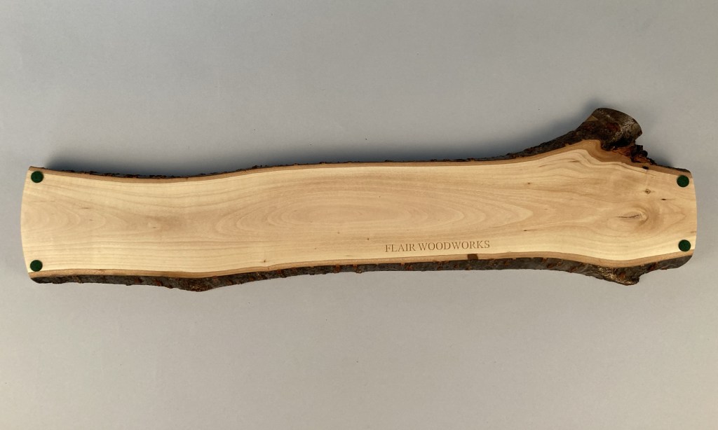 Characterful live-edge wood of good quality is not easy to find and takes special care and handling to avoid causing damage when processing. However, with some special techniques and patience, this type of material can result in spectacular designs that are authentic and honest to nature. Obtaining and cutting the wood wood is one challenge; creating multiple tracks of evenly-spaced holes that follow the live edge is another (my first board took about three hours to lay out)!