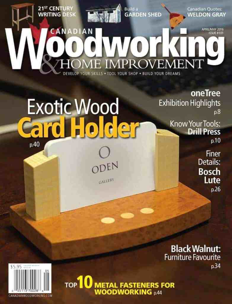 21st Century Writing Desk – p. 28, issue 101 (April/May 2016) of Canadian Woodworking & Home Improvement