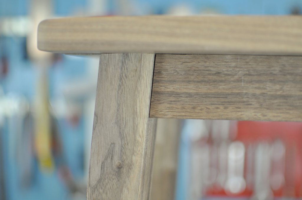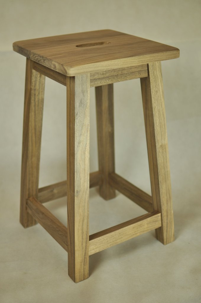 The stool is made of walnut. Some screws were used to attach the top.